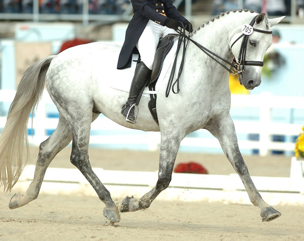 Positive body tension includes the quality of suppleness. A supple body is a body that uses its weight actively (the energy can pass through) as opposed to passively (stiff or static). So to be able to lead the rhythm, you must ride with your weight active instead of passive. By riding with your weight active, I don’t mean working excessively with your body (i.e., pumping or moving back and forth of your upper body). The quiet, balanced seat is still the foundation for everything, including positive body tension. What I mean by “active” is that the rider must allow her weight to spring down rhythmically through her body with the rhythm of the horse, as opposed to holding her weight which happens through stiffening.