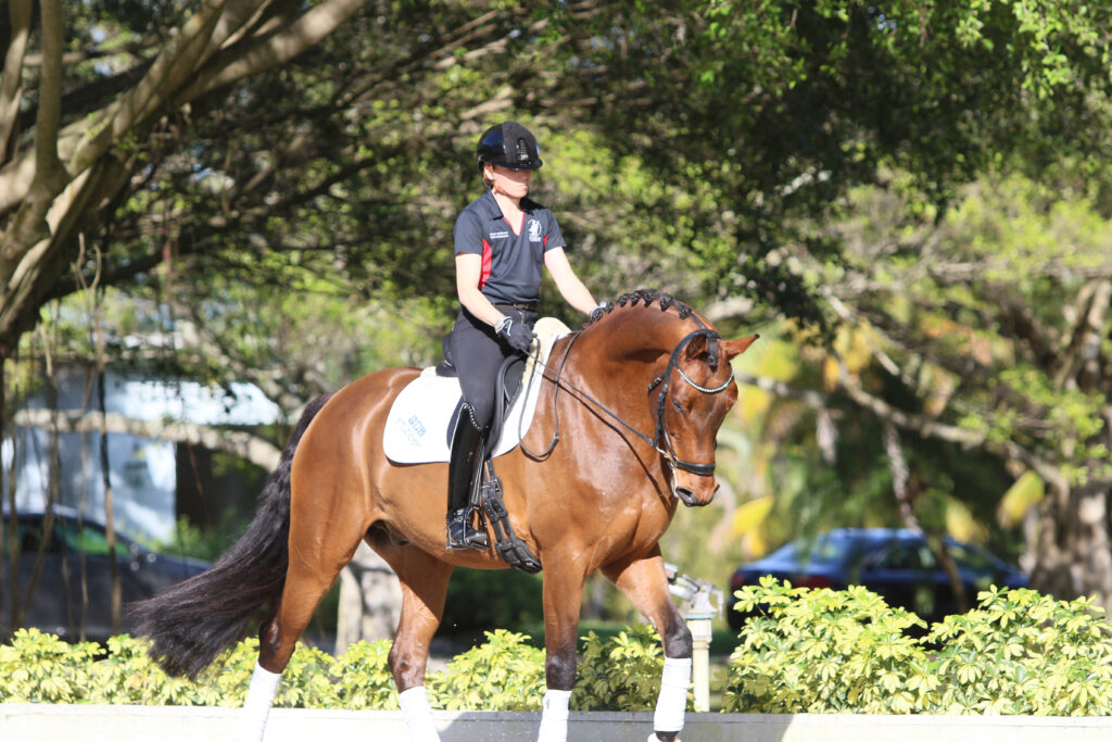 Sophia Schults of Ocala, Florida, is a USDF bronze and silver medalist, a member of the USDF National Youth Committee and is active with Dressage4Kids. After achieving success through the youth pipeline, Schults turned professional and continued her winning ways in the regional, national and international competition arena. She rode M. Revelation de Jus, an 8-year-old KWPM mare, owned by Helgstrand Dressage.