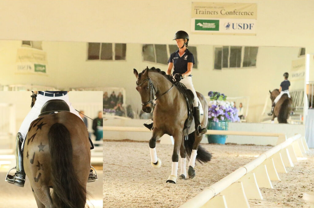 Hannah Irons of Queenstown, Maryland, and her 6-year-old Westphalian gelding Ein Traum (E.T.), owned by Irons Sporthorses LLC, returned to the USDF Trainers Conference again this year. We enjoyed watching the pair at last year’s event and were thrilled to see E.T. sporting another unique hindquarter clip featuring musical notes and stars (last year’s clip included a moon). A USDF bronze and silver medalist, both with distinction, Irons has competed successfully at the regional, national and international levels through the FEI North American Youth Dressage Championships.