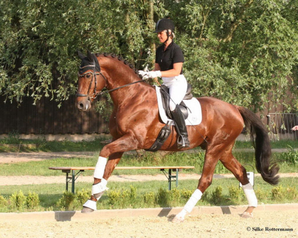 To summarize, learn to feel that your horse is actively seeking the contact from back to front with a swinging back and a soft and elastic contact. When that feeling is achieved, your horse will be going with his poll at the highest point and his nose in front of the vertical.