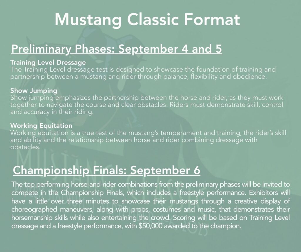 Above all, she highlights the versatility of mustang equine athletes and says once you establish a genuine connection with a wild horse, that trust enables you to go any direction. “Mustangs are becoming more and more popular. They come in every shape, size and color, and we’re seeing them competing and excelling in dressage, eventing and jumping,” Wallace said. “The Mustang Classic allows us to be ambassadors for these horses to show people what they’re capable of.”