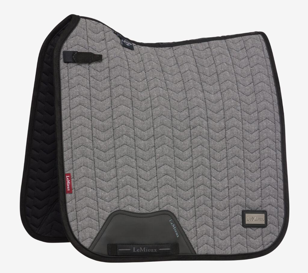 Designed out of a herringbone quilting pattern, the LeMieux Aspen Dressage Saddle Pad features a friction-free binding for a smooth, flat profile, and its eco-friendly, bamboo-blend lining is sweat-wicking and naturally antibacterial. The pad also includes LeMieux’s signature girth defense to protect the fabric from your boots and spurs and ensure its longevity.