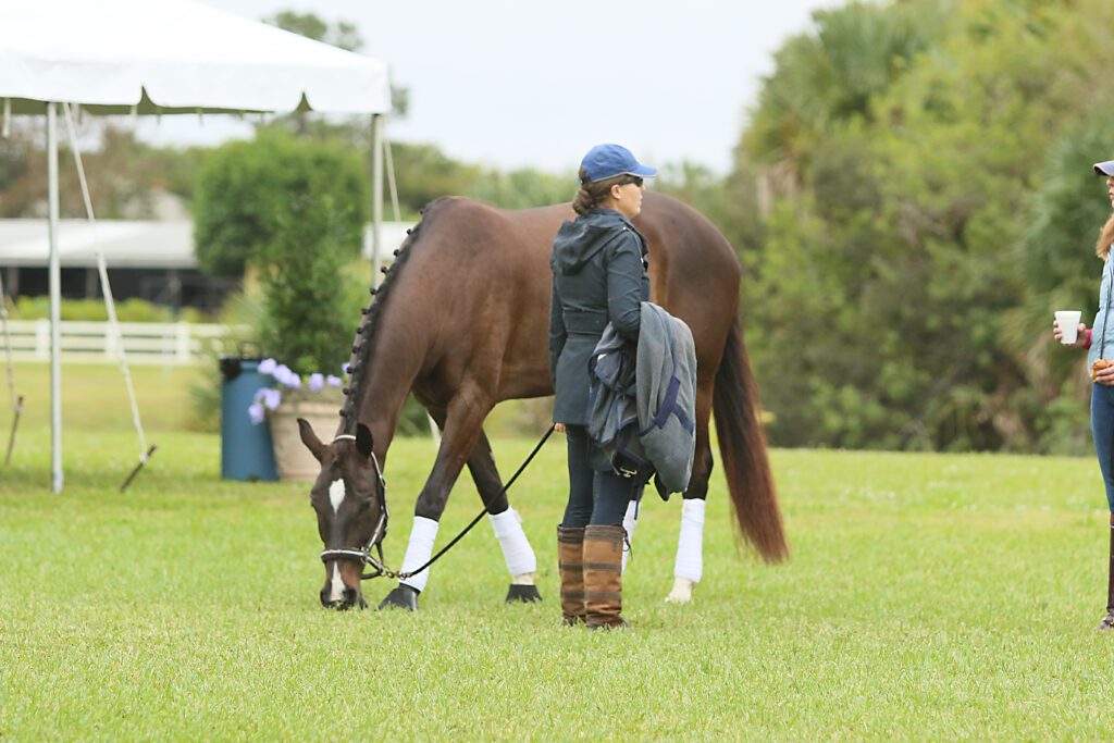 Training program: We frequently include chewing of the reins out of the hand in all three gaits in our training program to give DJ a break from elevation and collection and to check over and over his ability to stretch.